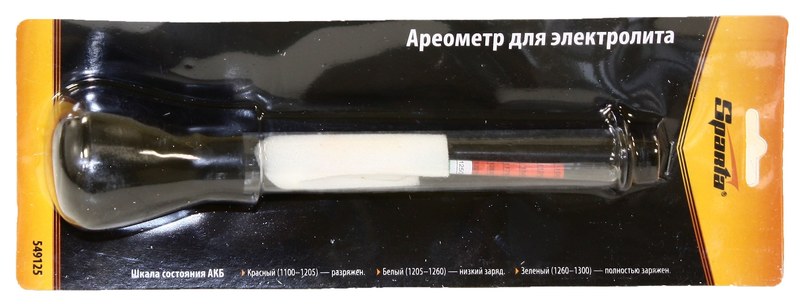 Предназначен для измерения плотности электролита в автомобильных аккумуляторах.